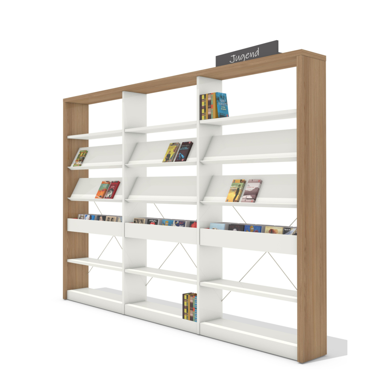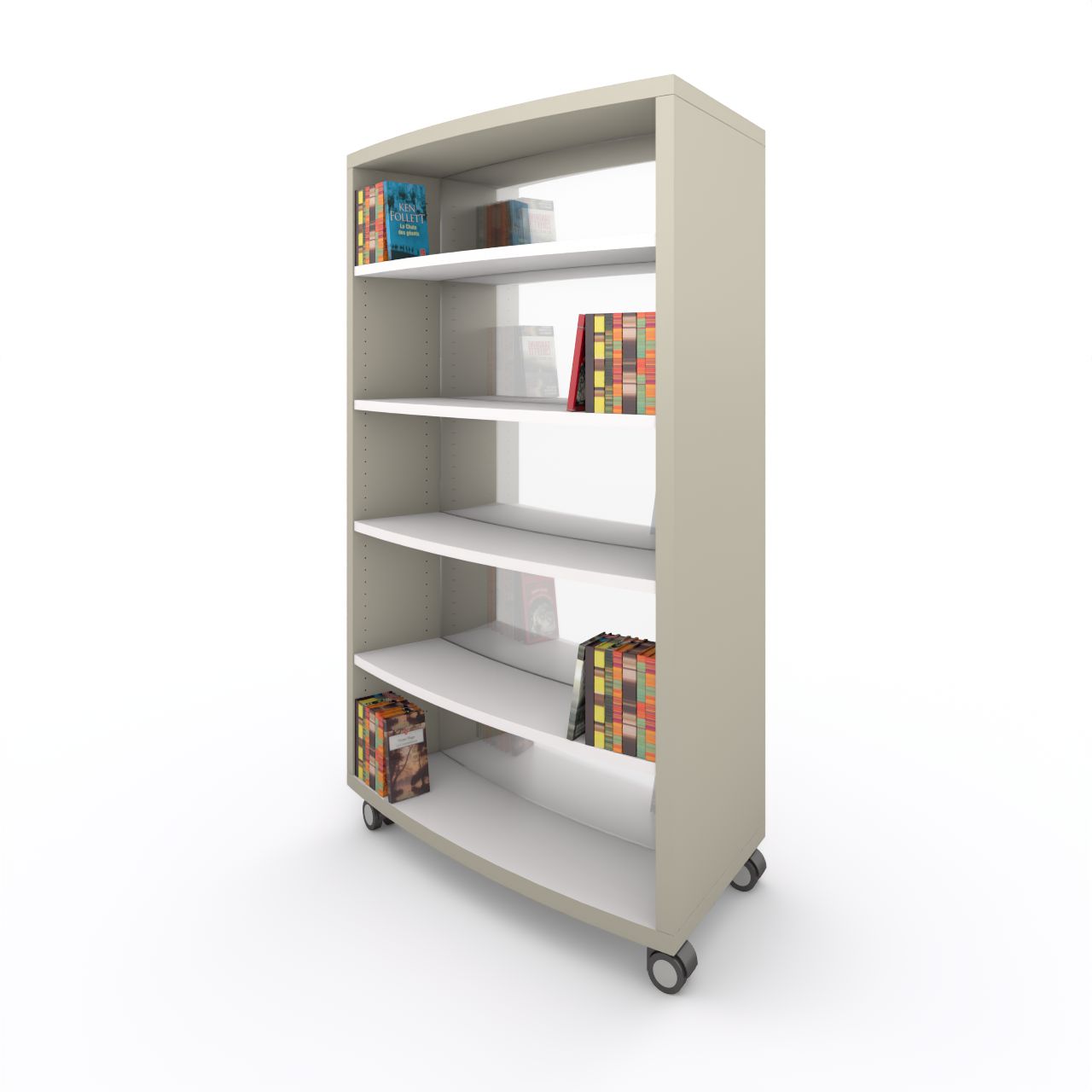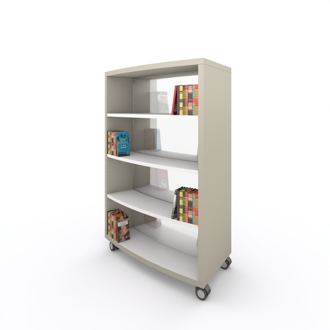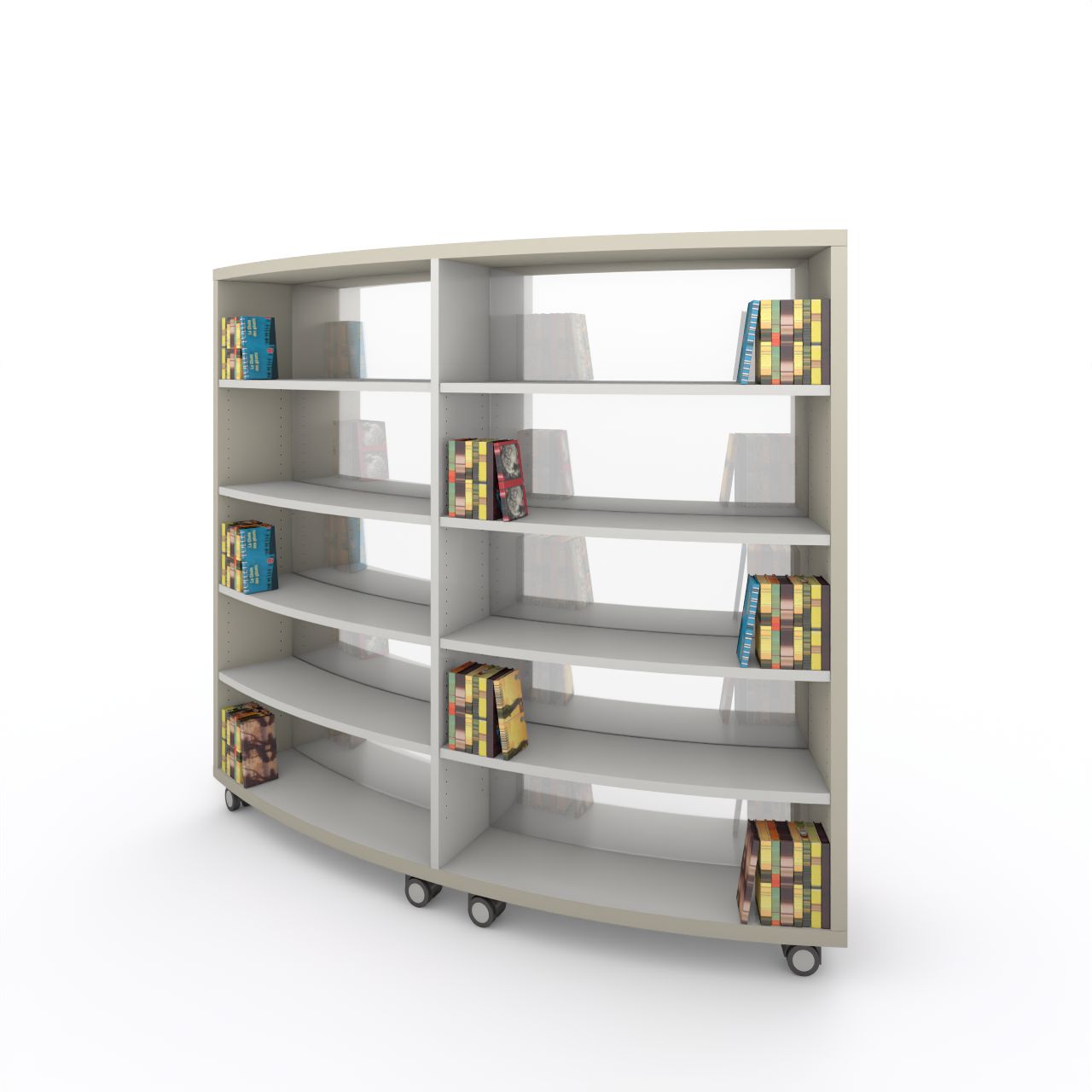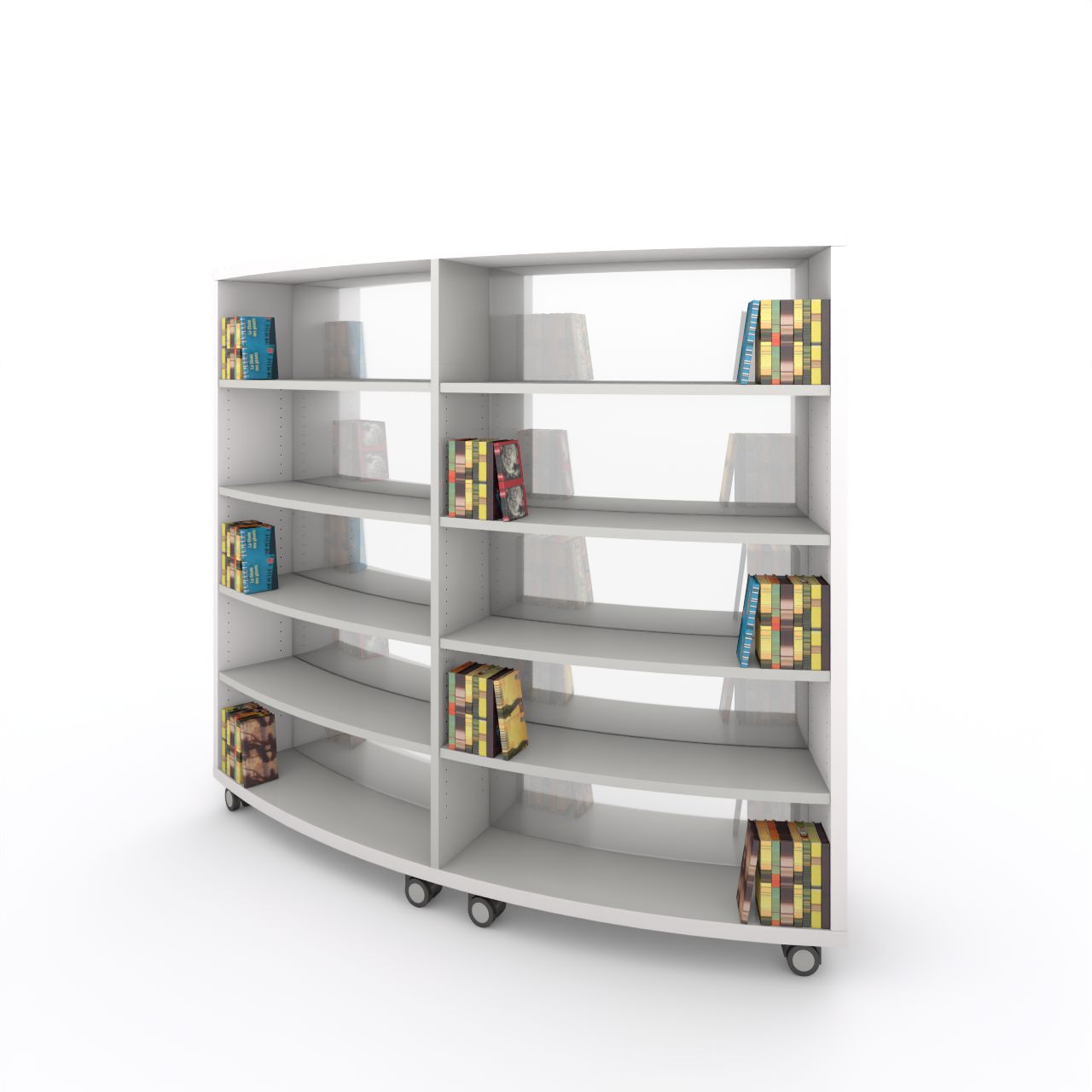 NOVA RUND mobile ist die gerundete Ausführung von NOVA WOOD mobile. Die Längsaussteifung von NOVA RUND mobile erfolgt mittels einer eingenuteten Acrylmittelwand, welche dem Regal eine transparente Leichtigkeit verleiht.