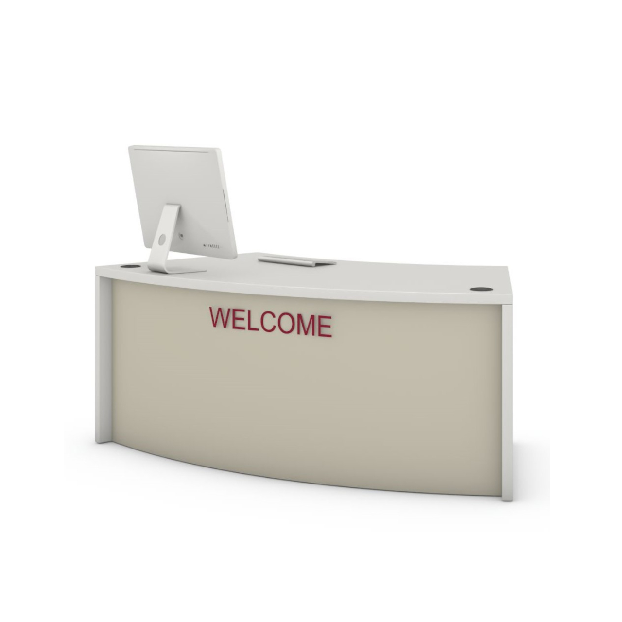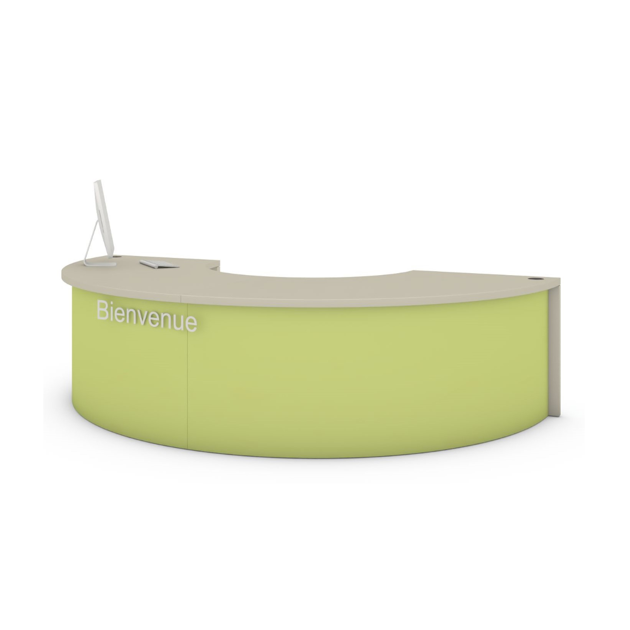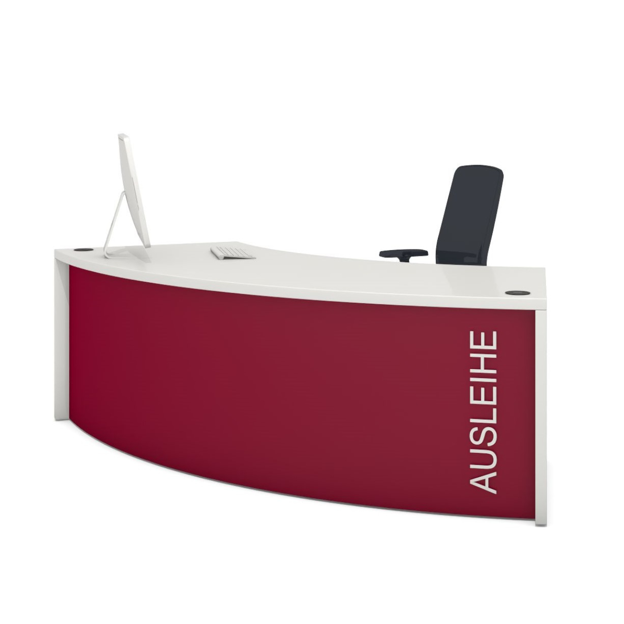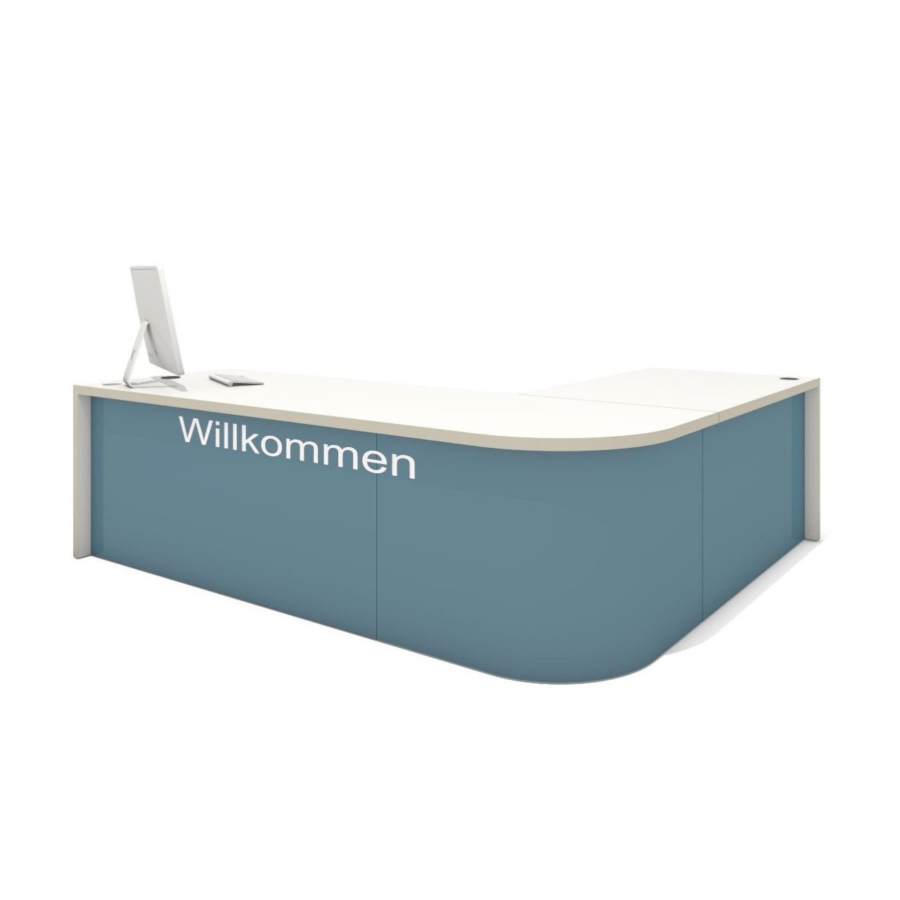 eine abgerundete Empfangstheke mit mehreren standard Winkeln und Konfigurationen: Radius 45°, 60°, 90° und 150° (60+90)