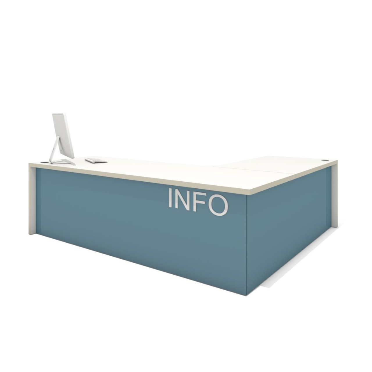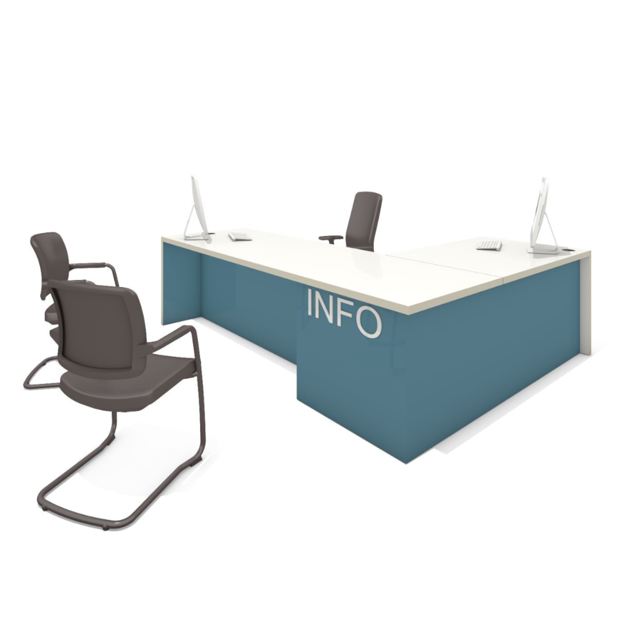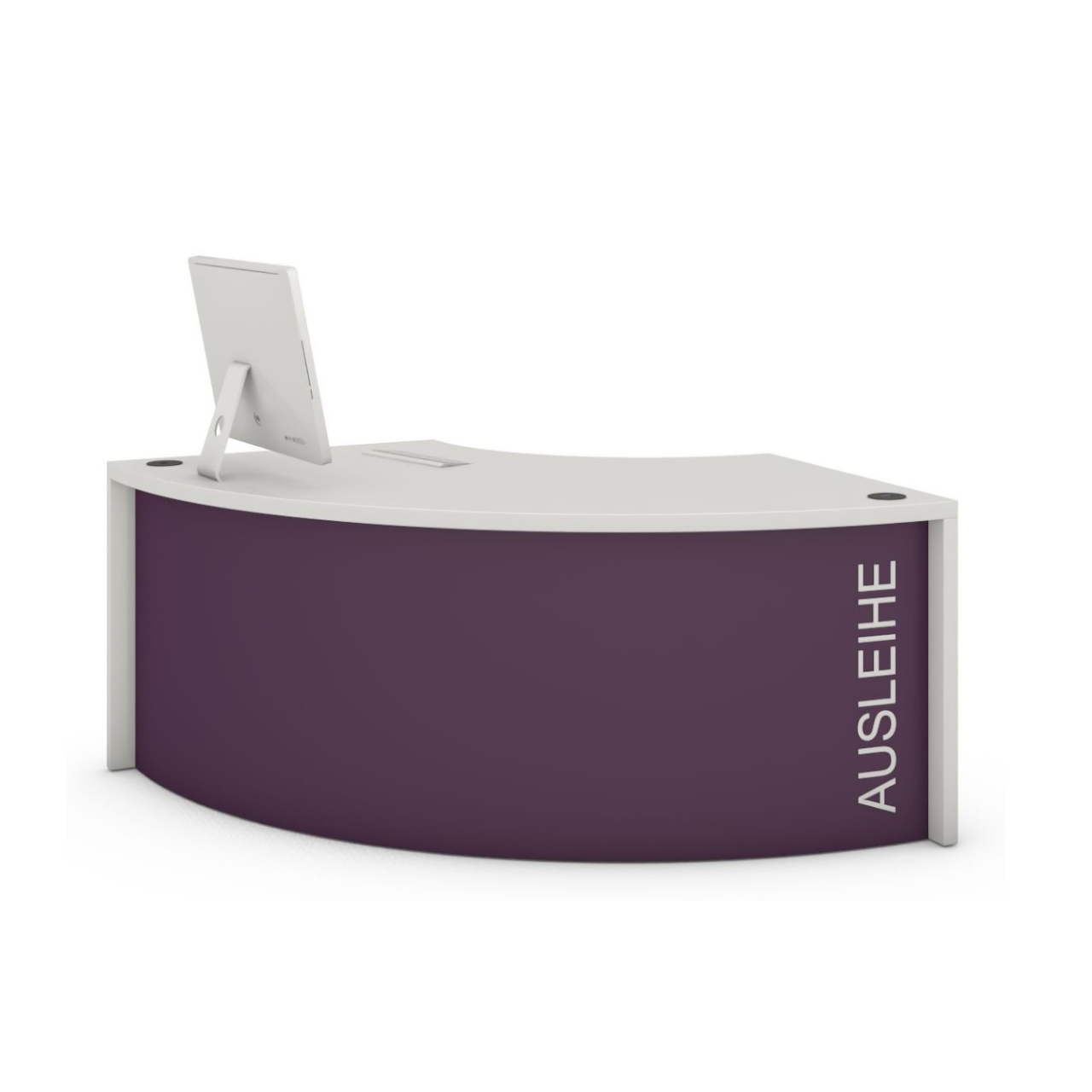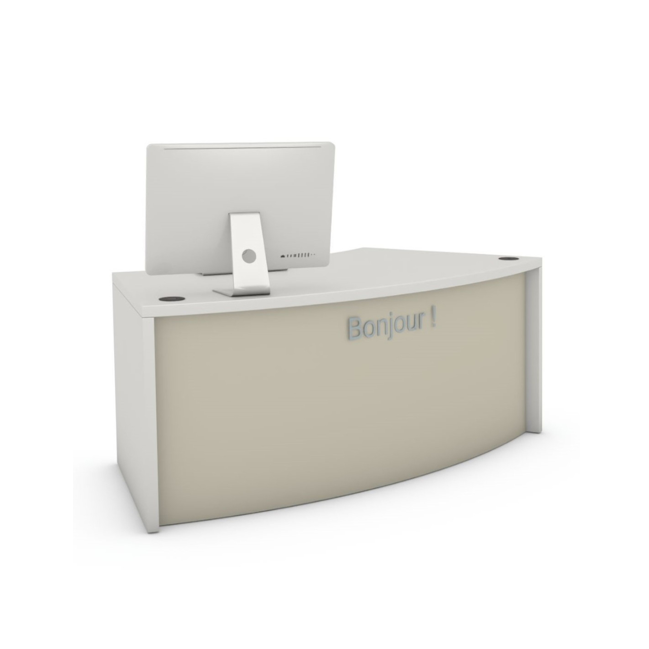 eine abgerundete Empfangstheke mit mehreren standard Winkeln und Konfigurationen: Radius 45°, 60°, 90° und 150° (60+90)